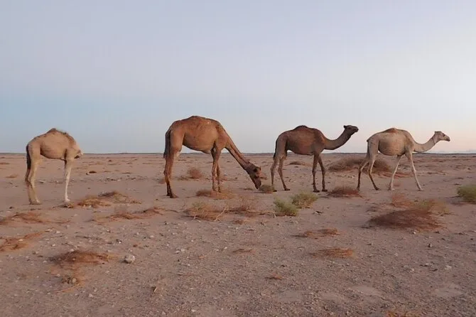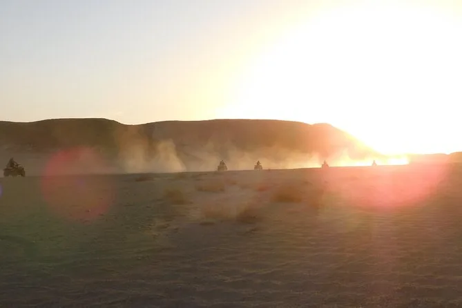 Your day includes pickup and drop-off from your El Gouna hotel or port, quad driving instruction at the motor park, all transport by air-conditioned minivan, guidance throughout from a local expert, stops at a Bedouin camp for hospitality drinks and shisha, entry to Wadi Billy canyon with time to explore fossil sites, plus dinner before heading back as dusk settles over the sand.