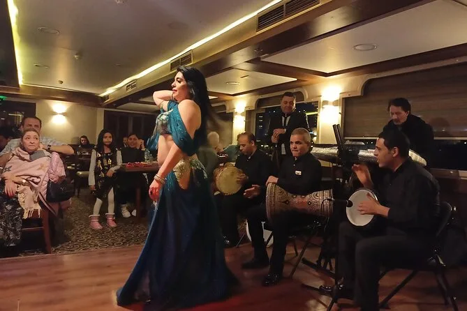 You’ll enjoy a buffet dinner with Egyptian dishes plus live entertainment like belly dancing and folk music during a two-hour river cruise.