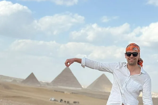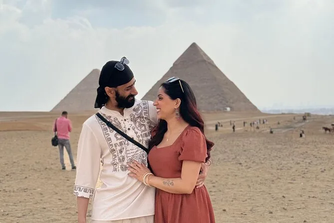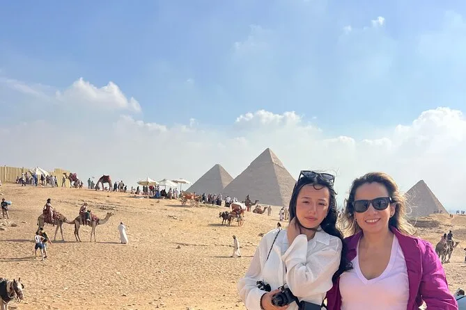 You’ll stand right beside the Giza Pyramids’ ancient stones, venture inside one if you’re feeling brave, ride a camel past sweeping desert views toward the Sphinx, and share laughs with your guide over lunch. It’s not just sightseeing — it’s feeling history under your fingertips.