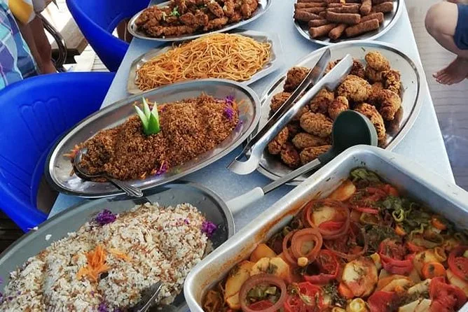 Soda, coffee or tea, and water are included during your day trip; cocktails are available at extra cost on Orange Bay Island.