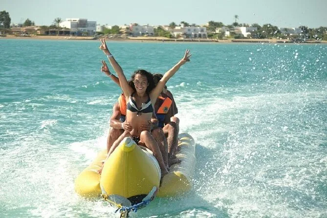 You’ll get time for beach games on Orange Bay Island plus water sports and parasailing over the Red Sea.