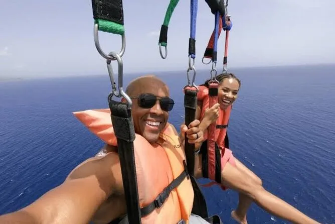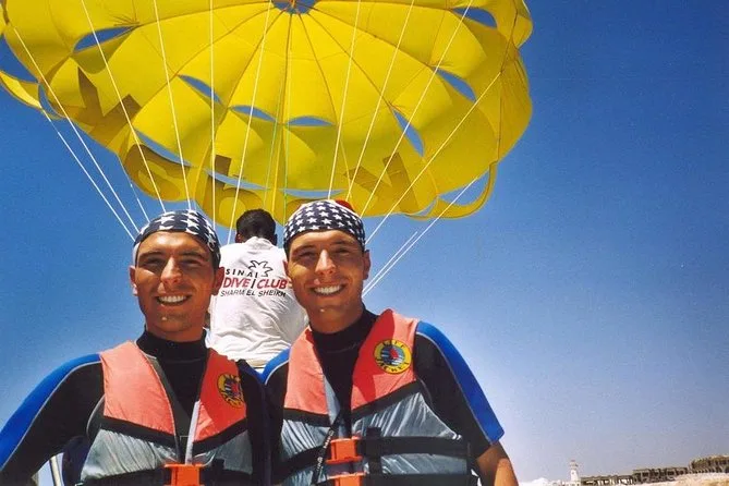 Your day includes pickup and drop-off right from your hotel in Hurghada, all necessary equipment like life jackets, admission to Hurghada Marina, speedboat ride out onto the water, and support from an experienced local captain and crew throughout your parasailing adventure.