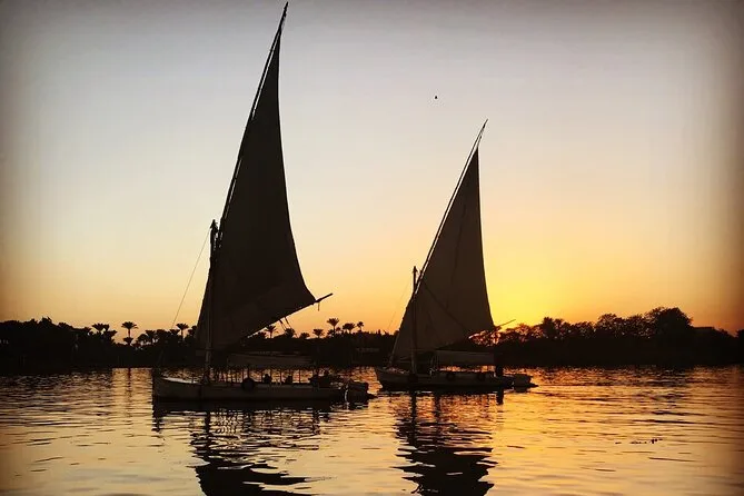 Your day includes private hotel pickup and return in an air-conditioned vehicle, both sunrise and sunset felucca rides on the Nile with a qualified local tour leader sharing stories along the way, plus traditional Egyptian tea served onboard — all service charges are covered so you can just relax into it.