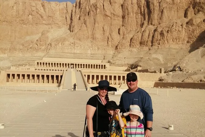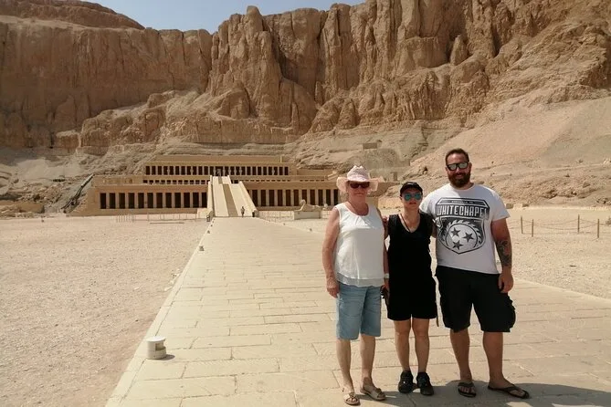 The tour visits Valley of the Kings, Hatshepsut’s Temple, Colossi of Memnon, Luxor Temple, and Karnak Temple.