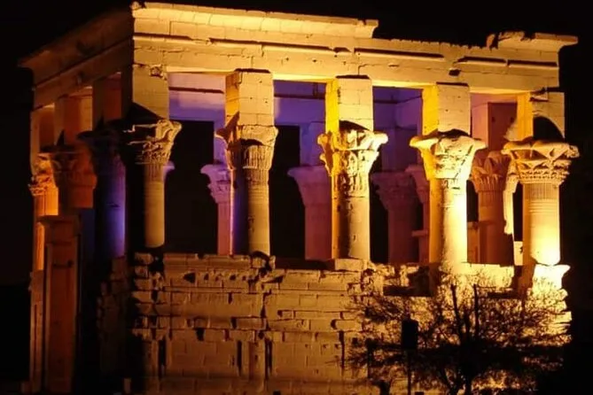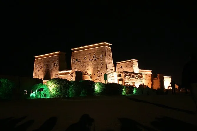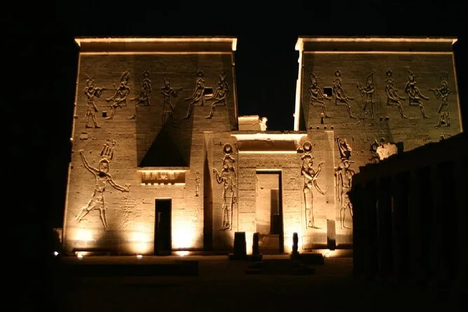 Your evening includes private pickup and drop-off at your Aswan hotel, a boat ride across to Agilkia Island where Philae Temple sits on the Nile, entry for the sound & light show with an audio guide provided throughout your visit before returning comfortably afterward.