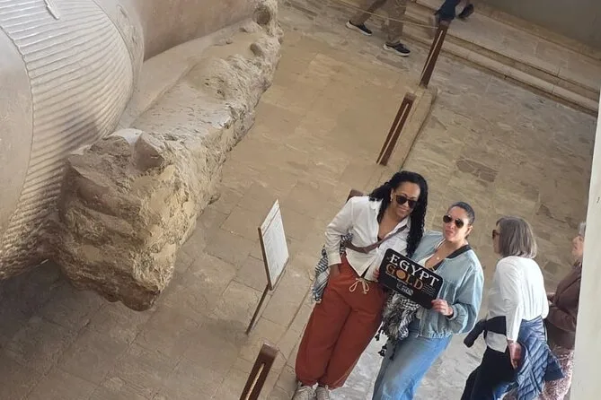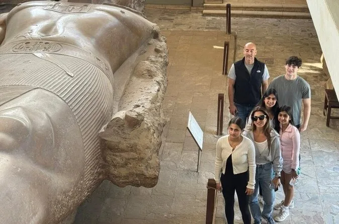 You’ll visit the Colossus of Ramses II museum and see the Alabaster Sphinx near ancient Memphis remains.