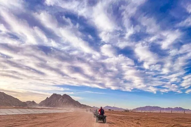 I didn’t expect the sand to feel so cool on my face when we stopped our quads just outside Sharm El Sheikh. The sun was dropping fast—everything looked gold and pink, and the engine noise faded into this weird quiet. Our guide, Mahmoud, grinned and handed me a scarf (“Bedouin style,” he said), then showed us how to wrap it. I probably looked ridiculous but nobody cared. The quad bikes were newer than I’d guessed—honestly, I was nervous about driving but after that quick test loop it felt easy enough. We zipped out into the open desert in a line, dust everywhere but also this huge sky above us.