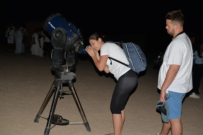 The next part is blurry—a short quad ride again (my arms were starting to ache), then we reached this big open area where dinner was set up under lanterns. The food surprised me: grilled chicken, salads, even veggie stuff for my friend who’s vegan. There was a live show too—belly dancing and this guy spinning in a rainbow skirt so fast I got dizzy watching him. Kids loved it; adults did too actually. After dinner we walked over to these massive telescopes set up away from the lights. One of the astronomy guides pointed out Saturn’s rings—I’d never seen anything like that through a lens before. It got cold fast; bring an extra layer if you can.