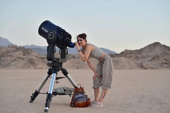 You’ll feel the rush of desert wind on a quad bike near Sharm El Sheikh, ride camels as dusk falls, sip sweet Bedouin tea in a traditional tent, share dinner under lanterns with live music and dance, then gaze at Saturn and Jupiter through powerful telescopes guided by local astronomy experts—all with hotel pickup included.