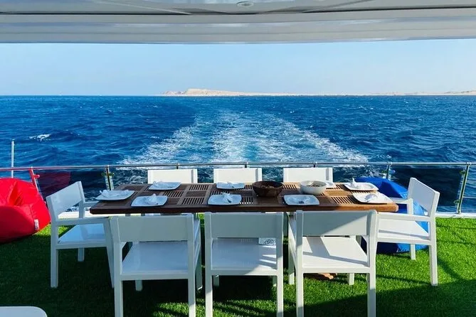 Your day includes round-trip transfers from your Sharm el Sheikh hotel in an air-conditioned vehicle, two guided snorkeling stops at Ras Mohamed with all equipment available to rent if needed, a fresh hot buffet lunch served on board with coffee or tea, time to relax or swim at White Island sandbank, plus support from your Falcon guide throughout before returning comfortably to your hotel.