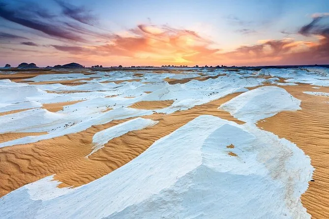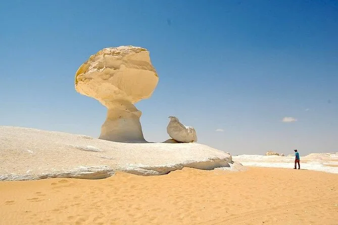 You’ll leave Cairo behind for three days of real desert adventure: riding jeeps across the Black Desert, camping beneath stars in the White Desert, sharing tea with Bedouin hosts, and catching sunrise over surreal rock shapes. Expect campfire dinners, ancient cave art at Djara Cave, a soak in natural hot springs—and stories you’ll keep retelling long after you’re home.