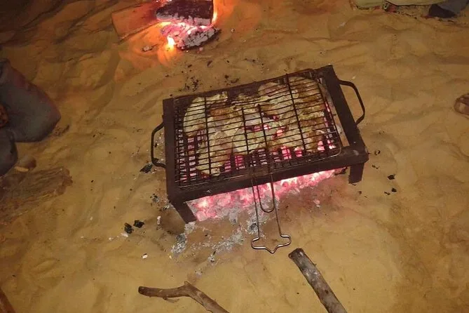The tour includes four meals: dinner cooked over a campfire in the desert plus breakfast and other meals at camp or hotel.