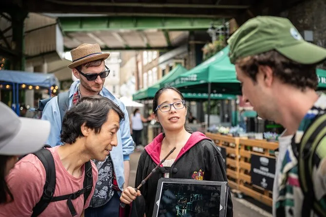 We crossed over to Borough Market and London Bridge — more Harry Potter filming locations tucked between food stalls and city noise. At one point Ben paused to show us where the Leaky Cauldron would be (“right there, next to the falafel stand — yeah, really”). It rained a little; no one cared. By then the group felt easy together, swapping movie trivia or just watching the Thames roll by under gray light. I still think about that statue in Leicester Square — people taking photos with it like it was an old friend.