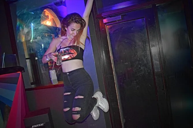 The crawl visits lively dance bars and nightclubs in Shoreditch—not traditional English pubs.