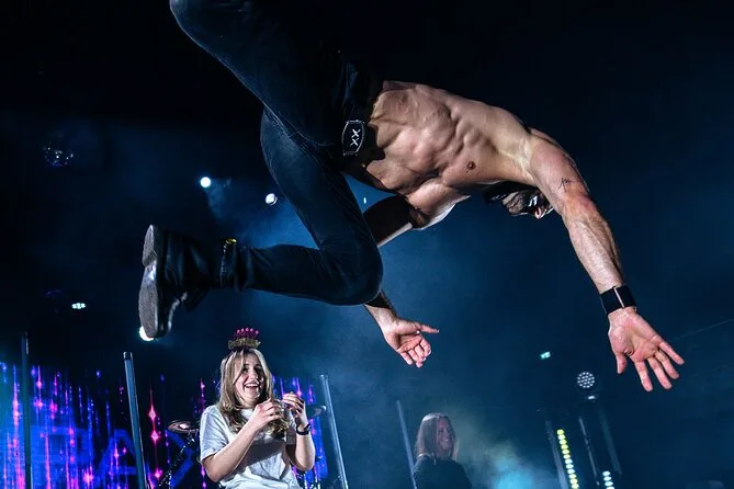 Nuestros asientos estaban tan cerca que podías ver el sudor en sus frentes (y sí, abdominales por todos lados). Las luces jugaban con azules y rojos intensos; la música sonaba más fuerte de lo que esperaba pero encajaba perfecto con el ambiente. En un momento, uno de los bailarines nos guiñó un ojo y juro que la mitad de la fila se sonrojó o gritó — no diré nombres. El presentador alternaba entre alemán e inglés para que nadie se sintiera fuera de lugar, y hubo momentos en que todos reíamos juntos, aunque no entendieras cada palabra. No es solo músculo — también cantan en vivo (uno hizo un cover de “Purple Rain” que todavía me ronda la cabeza).