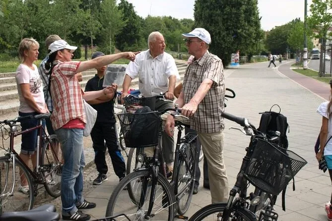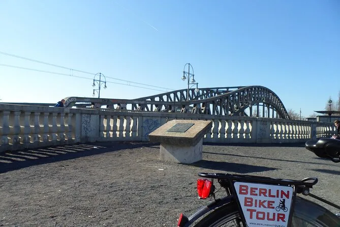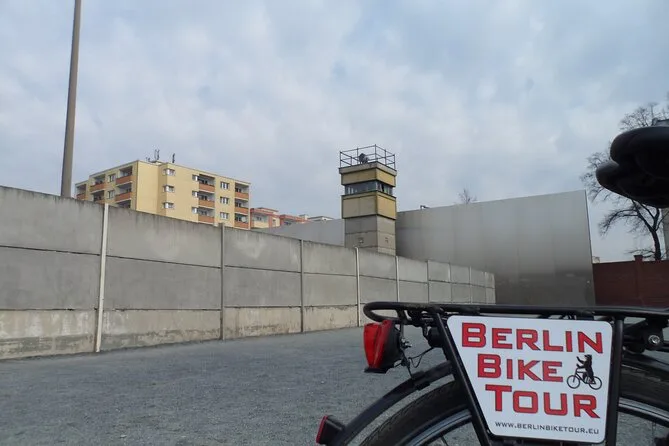 Tu día incluye un paseo guiado en bici con un local experto que comparte historias en cada parada — Mauerpark, Checkpoint Charlie, Puerta de Brandeburgo y más — con bicicletas para todos en tu grupo pequeño, para que solo te preocupes por empaparte de la historia de Berlín sin complicaciones ni perderte.