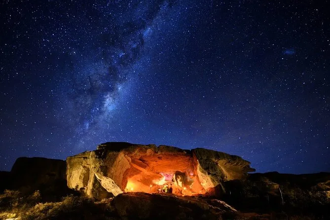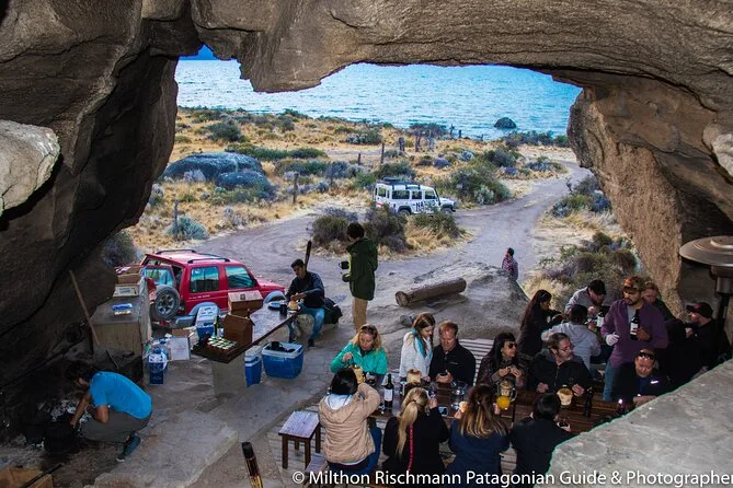 Tu día incluye traslado desde tu hotel en El Calafate, caminatas guiadas por las Cuevas de Walichu con expertos locales que cuentan historias durante el recorrido, y un almuerzo tradicional servido dentro de una de las cuevas — guiso de cordero con pan casero, sopa de verduras, mousse de chocolate de postre y tu elección de vino tinto, jugo de naranja o agua antes de regresar bordeando el Lago Argentino.