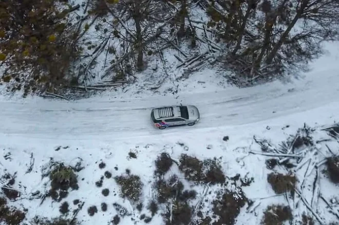 La vieja Ruta 3 estaba más accidentada de lo que esperaba — el barro salpicaba las puertas y las piedras crujían bajo nuestras botas cuando bajamos a estirar las piernas. Martín nos contó historias de los leñadores que trabajaban en estos bosques. Los lengas tienen una corteza cobriza que se desprende si la rozas (lo comprobé sin querer). De vez en cuando, el Lago Fagnano aparecía entre las ramas — enorme y con una calma que te hace sentir pequeño de una forma buena.