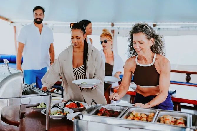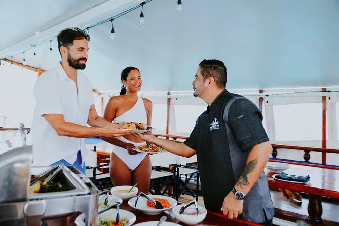 Navega la costa sur de Aruba en un schooner de teca, disfrutando cócteles mientras te relajas o tomas el sol. Nada o haz snorkel en aguas cristalinas cerca de Spanish Lagoon, luego ríe y comparte un almuerzo a la parrilla preparado por un chef a bordo con música caribeña de fondo. Es un plan relajado, social y lleno de momentos que querrás recordar.