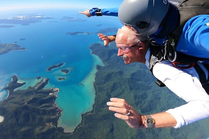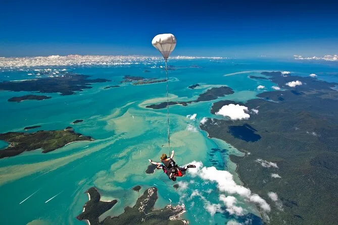 Saltas desde hasta 15,000 pies sobre Airlie Beach y las Islas Whitsunday.