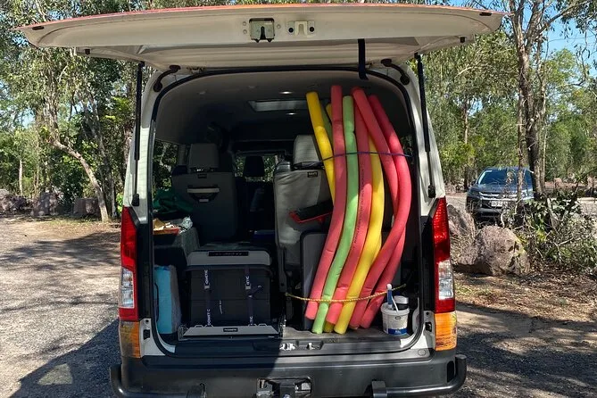 Tu día incluye recogida en tu alojamiento en el centro de Darwin alrededor de las 8 am, transporte con aire acondicionado durante todo el recorrido, fruta de temporada y snacks (galletas y productos frescos locales), todas las paradas para nadar con flotadores incluidos para que te relajes, además de un picnic preparado por The Harvest Press con opciones sin gluten o veganas si lo pides antes, y regresarás a Darwin al atardecer, cansado pero feliz y con la piel dorada por el sol.