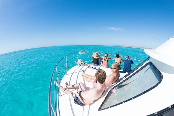 El tour regresa a Exmouth alrededor de las 4:30 pm tras un día completo en el arrecife.