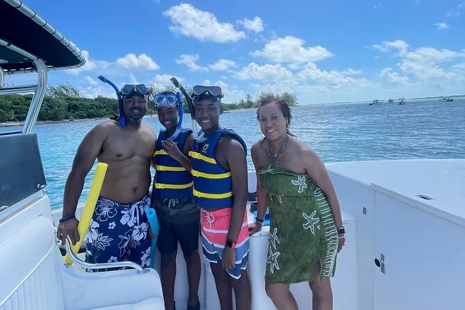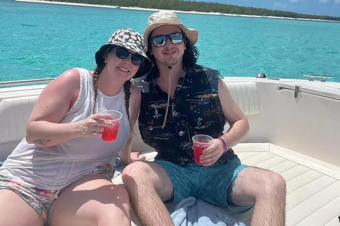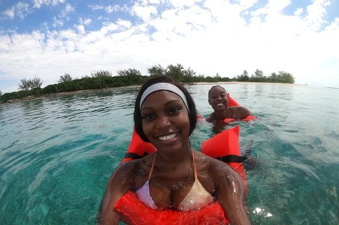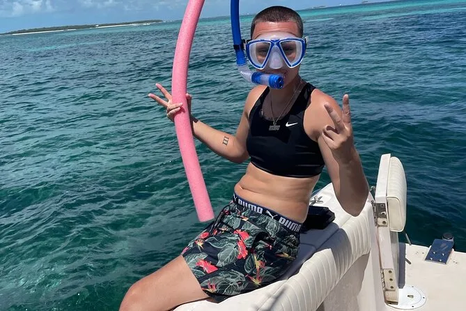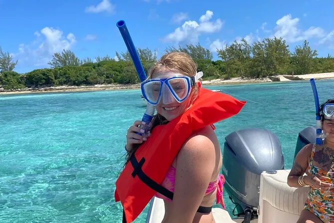 Tu día incluye agua embotellada, snacks, uso de equipo de snorkel con guía local como Li, además de jugos de manzana, naranja, piña y arándano a bordo. También hay bebidas alcohólicas durante el traslado en bote entre Nassau y Rose Island.