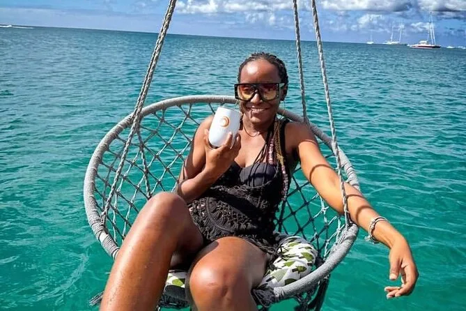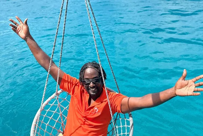 Tu día incluye un lugar a bordo del pontón de dos pisos Oceanluxx navegando por la costa oeste de Barbados, barra libre ilimitada (solo adultos), almuerzo bajan fresco preparado por chef servido en cubierta, uso de equipo de snorkel para nadar con tortugas, música durante todo el viaje y mucho espacio para relajarte, ya que no hay más de 15 invitados. Solo recuerda llevar toalla y protector solar.