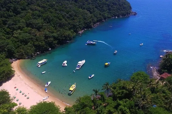 Tu día incluye seguro de pasajero, todo el transporte en lancha entre el muelle de Perequê y cada playa, agua mineral a bordo durante todo el trayecto, y uso gratuito del equipo de snorkel durante las paradas para nadar, regresando a última hora de la tarde.