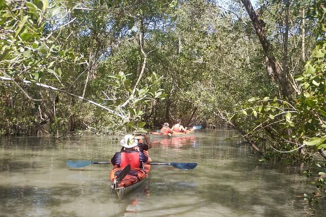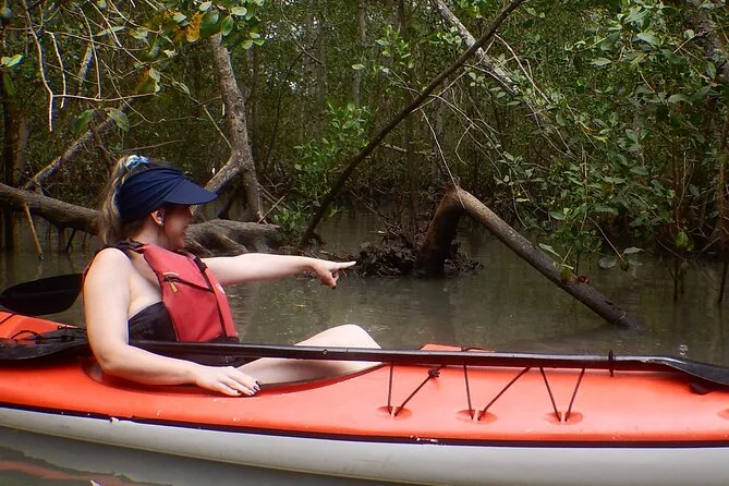 Se puede entrar al manglar en kayak si la marea está alta; los barcos no pueden acceder.