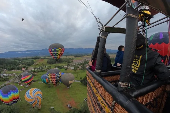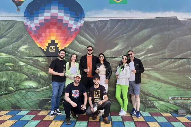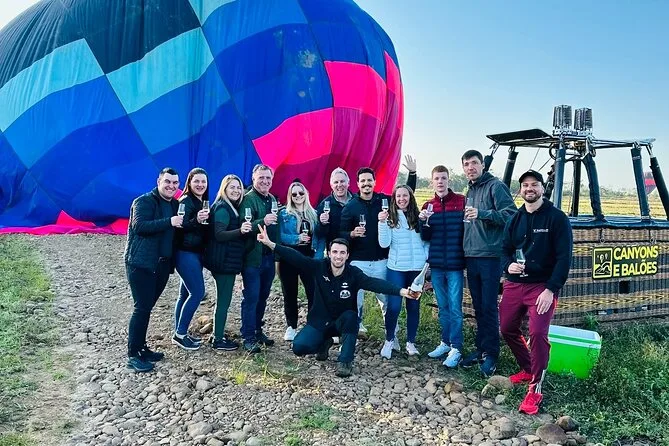 Tu mañana incluye traslado desde el centro de Praia Grande al campo de lanzamiento, café espresso o té con galletas antes del vuelo, seguro de aventura durante el paseo en globo sobre los cañones de Brasil, y un brindis con espumante al aterrizar — todo acompañado por pilotos locales expertos antes de regresar juntos al pueblo.
