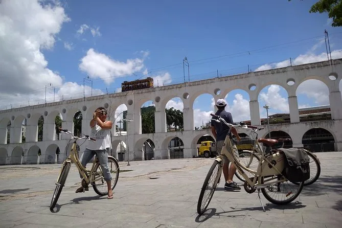 Recorre en bici los barrios más emblemáticos de Río de Janeiro con un guía local, haciendo paradas en lugares como la playa de Copacabana, el cementerio São João Batista, el Parque Flamengo, los arcos de Lapa y los famosos Escalones Selarón. Prepárate para risas, sonidos urbanos y momentos auténticos del día a día — además, todo el equipo de bici está incluido para que disfrutes sin preocupaciones.