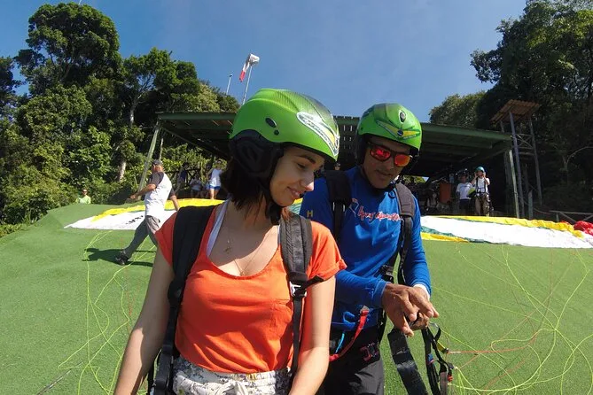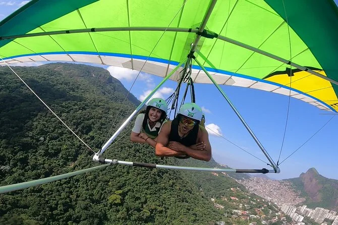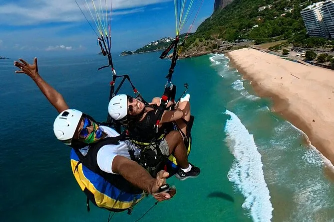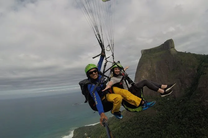 Tu día incluye transporte privado con recogida y regreso a tu hotel en la zona sur de Río, todas las tasas y seguro, equipo nuevo de parapente como casco y arnés, además de fotos digitales y video GoPro de tu vuelo tándem antes de volver a tierra firme.