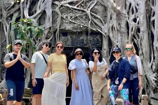 El resto del día desde Siem Reap pasó rápido: el templo Bayon con todas esas caras de piedra mirando desde cada ángulo (traté de contarlas pero perdí la cuenta), luego pasear por Ta Prohm donde las raíces de los árboles se derraman sobre muros antiguos como sacados de un sueño. Dara señalaba tallados medio ocultos por el musgo; parecía conocer cada rincón. Hacía humedad y la camiseta se me pegaba a la espalda, pero no importaba — hay algo en ver esos lugares de cerca con un grupo pequeño que te hace olvidar el calor por un rato. Terminamos cerca del mediodía y Dara se aseguró de que todos regresaran a sus hoteles.