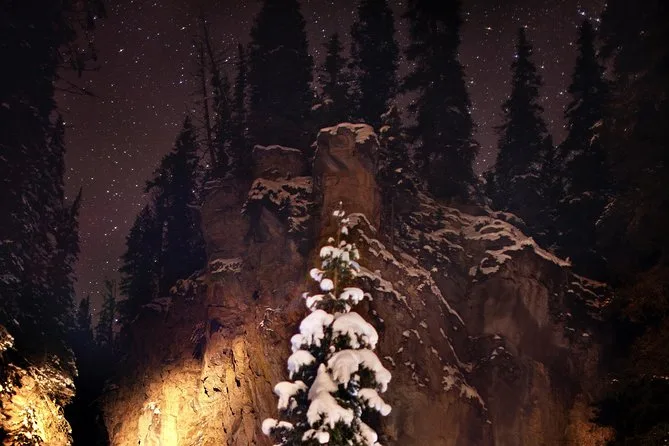 Camina por Johnston Canyon después del anochecer con un guía local, usando tu propia linterna mientras las cascadas heladas brillan a tu alrededor. Haz una pausa para chocolate caliente y galletas de arce junto a las cataratas inferiores antes de volver bajo las estrellas — una experiencia tranquila y emocionante que recordarás mucho tiempo después de dejar Banff.