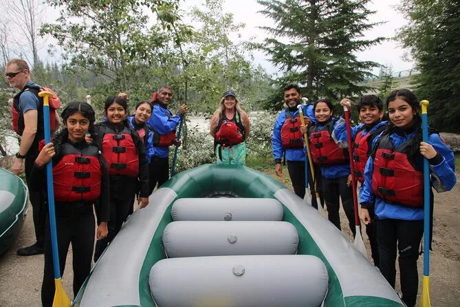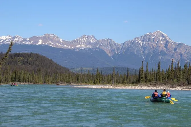 Tu día incluye todos los impuestos y tasas más GST, un guía local que lidera tu grupo por el Río Athabasca desde Jasper con recogida programada (normalmente en el parking de autocaravanas), remos para todos y una hora navegando entre tramos tranquilos y rápidos Clase II antes de volver al pueblo.