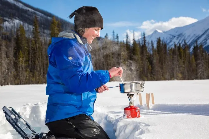 Tu tarde incluye recogida en el aparcamiento de autobuses del Hotel Mount Royal en Banff, transporte ida y vuelta al Parque Nacional Kootenay con un guía local, uso de raquetas y bastones, además de chocolate caliente y dulce de arce hecho en la nieve antes de regresar juntos.