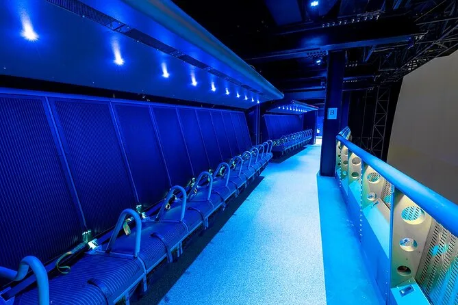 La experiencia completa dura unos 25 minutos incluyendo el pre-show y la charla; el vuelo simulado dura alrededor de 8 minutos.