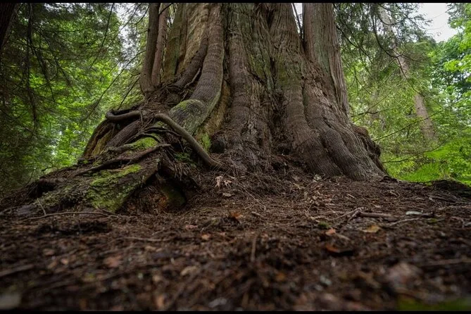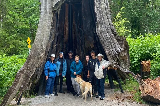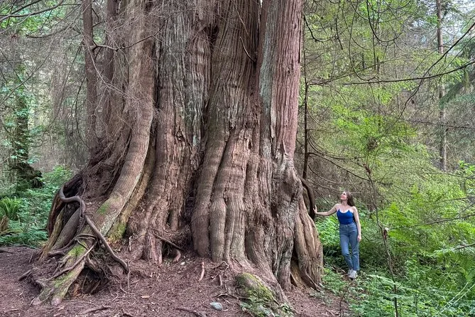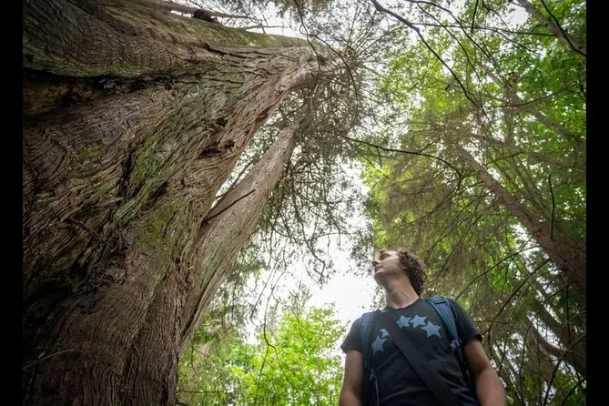 Tu día incluye un paseo guiado por el bosque milenario de Stanley Park con el experto en árboles grandes Colin Spratt; verás imponentes abetos Douglas de más de 600 años, estarás bajo un cedro rojo occidental de 1000 años y el arce más grande de Canadá, mientras exploras con mapas históricos y postales vintage que hacen revivir el pasado de Vancouver en cada sendero.