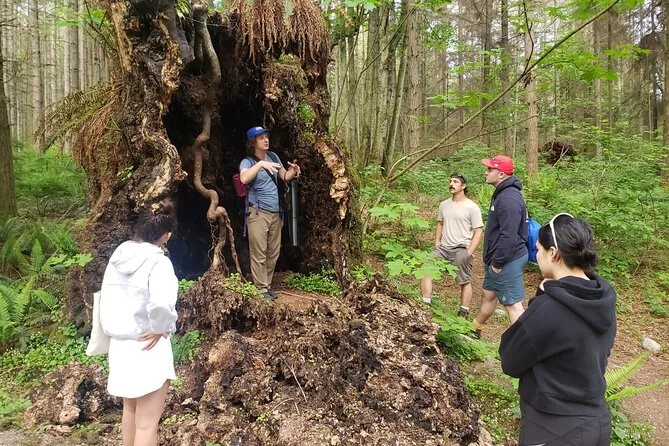 Aprenderás sobre la historia de Stanley Park, sus habitantes originales Coast Salish y la importancia ecológica de los bosques antiguos.