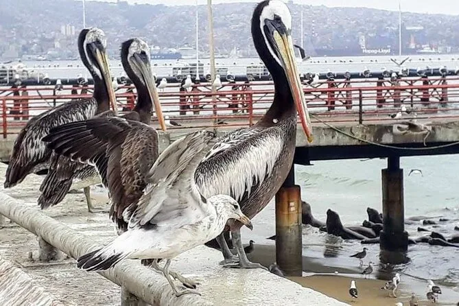 Valparaíso parecía de otro mundo. Subimos en un funicular antiguo por el Cerro Alegre — traqueteaba tanto que agarré el pasamanos más fuerte de lo que quería. El arte callejero está en todas partes: gatos con gafas de sol, poemas en colores vivos. Camila conocía a algunos artistas por su nombre; incluso nos mostró su mural favorito cerca del Pasaje Bavestrello. En la Plaza Sotomayor, los pescadores sacaban cubetas de mariscos mientras los pelícanos los miraban con esperanza. La ciudad huele a sal, pintura y pescado frito al mismo tiempo.