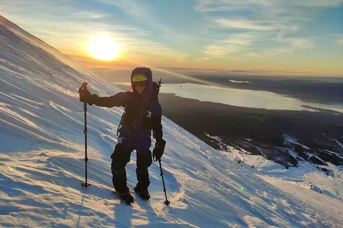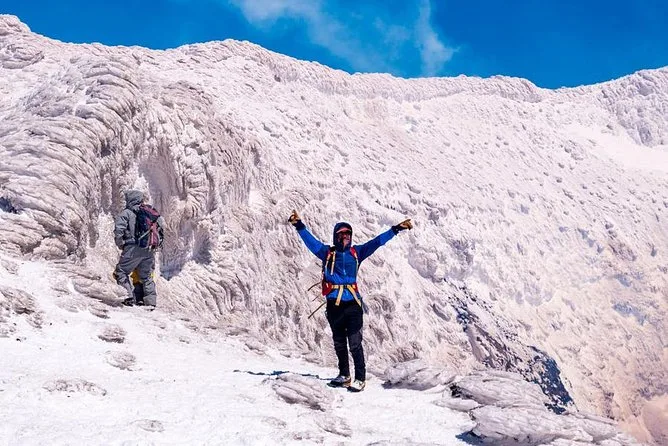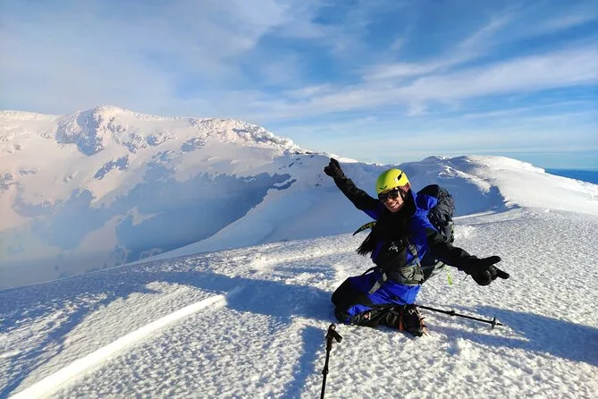 Si la actividad volcánica es alta, el recorrido cambia a un trekking prolongado por el glaciar con exploración de cuevas en lugar de llegar al cráter.