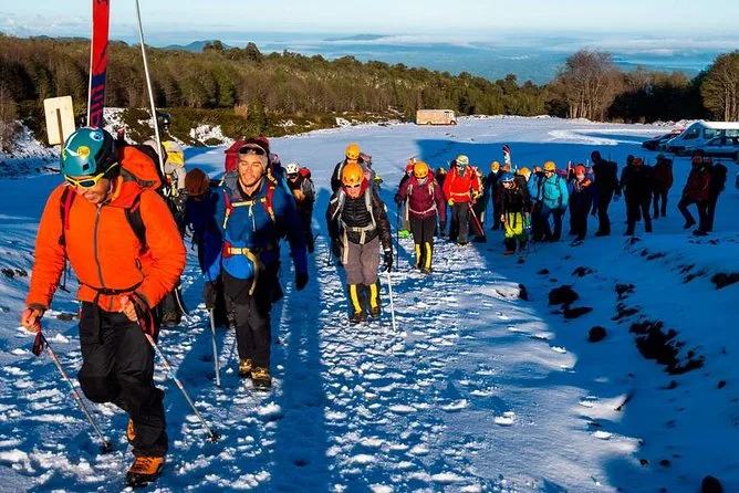 Tu día incluye guías locales certificados como Richard Díaz que te llevan seguro hasta la cima del Villarrica o a las cuevas glaciales si es necesario; todo el equipo técnico como botas, cascos, crampones, guantes e incluso máscara de gas si se requiere; transporte privado desde Pucón y todas las entradas al parque nacional. Además, el seguro de actividad está incluido para que disfrutes cada paso (y deslizamiento) sin preocupaciones.
