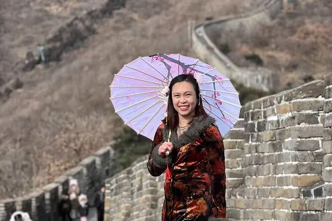Tu día incluye recogida privada desde tu hotel o aeropuerto PEK con guía de habla inglesa (si eliges esa opción), todas las entradas a la Gran Muralla de Mutianyu cubiertas si seleccionas esa opción, agua mineral gratis durante los traslados en un coche privado limpio—y después de explorar todo el tiempo que quieras (dentro de lo razonable), te dejarán de vuelta en tu hotel o puerta de embarque sin desvíos inesperados.