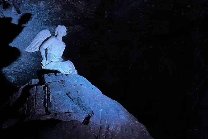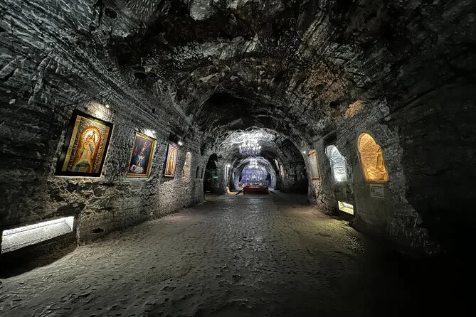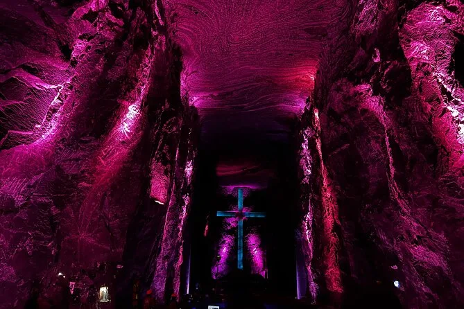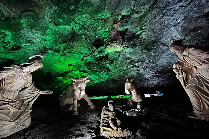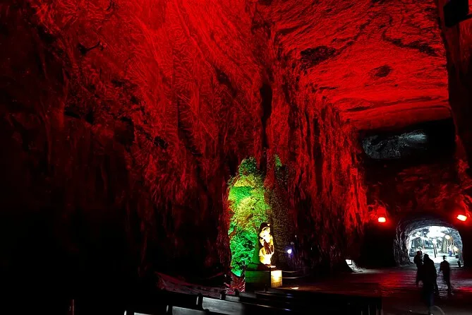 Luego visitamos la Catedral de Sal de Zipaquirá. No te das cuenta de lo profundo que estás hasta que sientes ese aire fresco dentro de los túneles. Las paredes brillan con cristales de sal — tocarlos deja un polvo fino en los dedos. No es solo una iglesia; es como pasear por una galería de arte subterránea tallada a mano. Nuestro guía conocía cada rincón y nos contó historias de los mineros que construyeron capillas secretas antes de que se hiciera famosa.