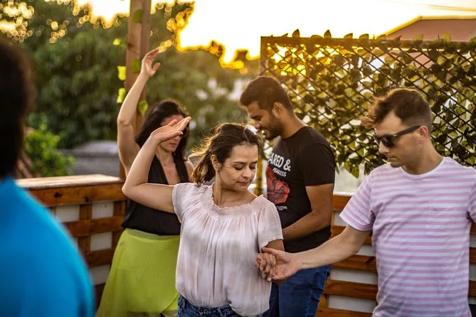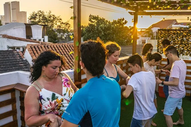 Bailarás descalzo en una azotea escondida del barrio Getsemaní en Cartagena, aprendiendo salsa, merengue, bachata y champeta con un guía local. Disfruta cervezas, vino y ron colombiano mientras te mueves al ritmo. Risas, vistas al atardecer sobre el fuerte San Felipe y nuevos amigos te esperan, además de un video tutorial para seguir practicando en casa.