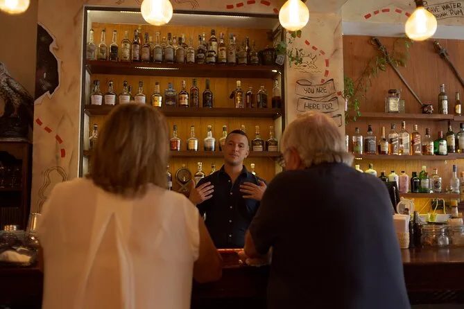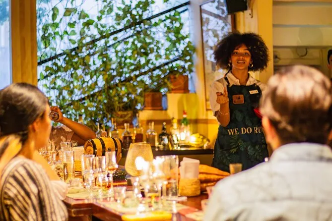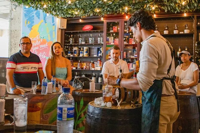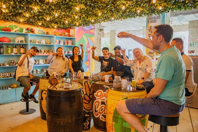 Degustarás ocho rones colombianos acompañados de chocolates locales en Cartagena, guiado por narradores que hacen que cada sorbo sea inolvidable. Disfruta tres bocados salados típicos mientras risas y relatos de piratas llenan el ambiente. Prepárate para una experiencia cálida, llena de sabor y que te hará viajar por Colombia sin moverte de tu asiento.