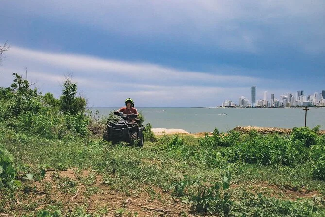 Tu día incluye traslado en bote ida y vuelta entre Cartagena y la isla Tierra Bomba, uso de un ATV con todo el equipo de seguridad; durante el recorrido tendrás visitas guiadas por Bocachica y el fuerte San Fernando, con tiempo para refrescarte en Playa Linda antes de regresar cruzando la bahía.