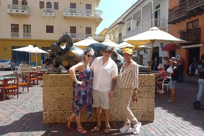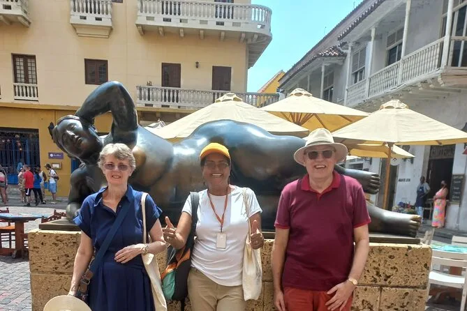 Aún recuerdo ese cambio repentino al cruzar las puertas de la ciudad vieja de Cartagena — un momento estás entre taxis y calor, y al siguiente, dentro de esos muros de piedra todo parece más antiguo y tranquilo. Nuestra guía Camila nos llamó junto a una estatua de Los Pegasos, sonriendo como si nos hubiera estado esperando toda la mañana. Señaló bustos y estatuas que seguro me habría perdido si hubiera ido solo. El aire olía a mar y a plátano frito, ese aroma que para mí es el sello de Cartagena.