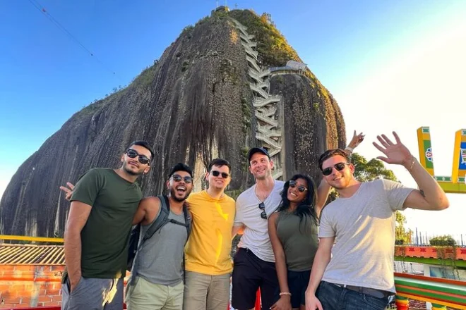 Comienza tu día en Guatapé con desayuno y anécdotas locales antes de subir la Piedra del Peñol para disfrutar vistas increíbles del lago. Almuerza junto al agua, navega entre islas en bote, recorre calles llenas de color y arte en zócalos, y termina con un encuentro con llamas antes de regresar—prepárate para un día lleno de sorpresas y color.